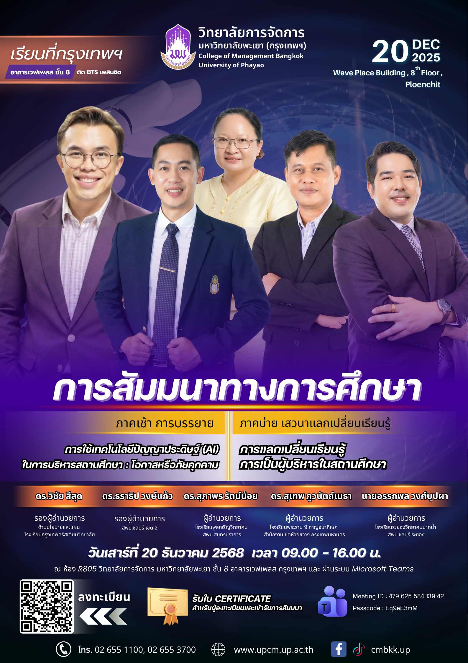 ห้อง R805 วิทยาลัยการจัดการ มหาวิทยาลัยพะเยา ชั้น 8 อาคารเวฟเพลส กรุงเทพฯ
